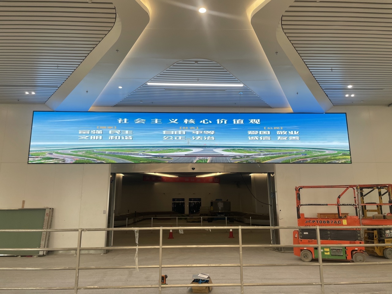 武汉天河机场T2航站楼改造工程是湖北省、武汉市重点工程,恩倍思严格把控质量关,以匠心工艺、卓越品质和可靠性能为提升天河机场“四型机场”建设水平以及建设中部地区国际门户枢纽助力。在航站楼出发大厅,恩倍思为其打造两块分辨率为2560*1040的大屏,旅客一进入航站楼便可在大屏上查看航班动态及办理手续的相关信息。在到达厅,恩倍思打造了一块分辨率为5920*960的大屏,为旅客和工作人员提供及时准确的信息服务。三块大屏刷新率均为3840Hz,画面显示清晰稳定,色彩饱满细腻,具有良好的信息传播效果;且均采用简易磁吸结构安装方式,支持前维护,安装维护简单方便,外形也更加轻薄美观。