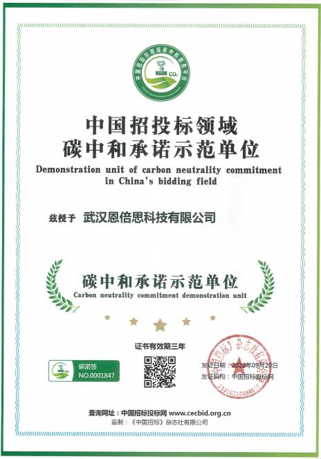 实现碳达峰、碳中和是中国向世界作出的庄严承诺,也是一场广泛而深刻的经济社会变革,恩倍思显示照明赋能,被授予“碳中和承诺示范单位”,作为碳诺签NO.0001847号展示,迈向碳中和。